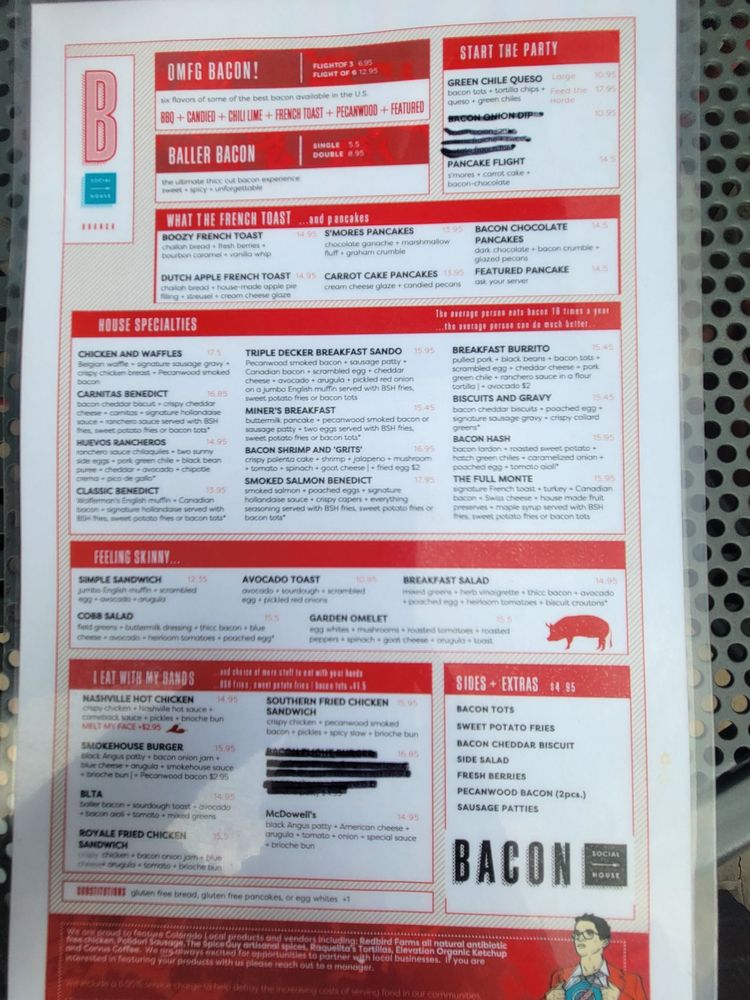 Bacon Social House - Sunny Side in Denver, CO, offers a diverse menu with options for everyone, including vegan and limited vegetarian choices. This trendy and casual spot provides a welcoming environment for all guests, with amenities like outdoor seating, free Wi-Fi, and a full bar. Their unique offerings, such as plastic-free packaging and reusable tableware, showcase their commitment to sustainability. The restaurant's location on W 44th Ave makes it a convenient choice for a delicious breakfast, brunch, or lunch. With friendly staff, great food, and a range of amenities, Bacon Social House - Sunny Side is a must-visit spot for those looking for a memorable dining experience in Denver.